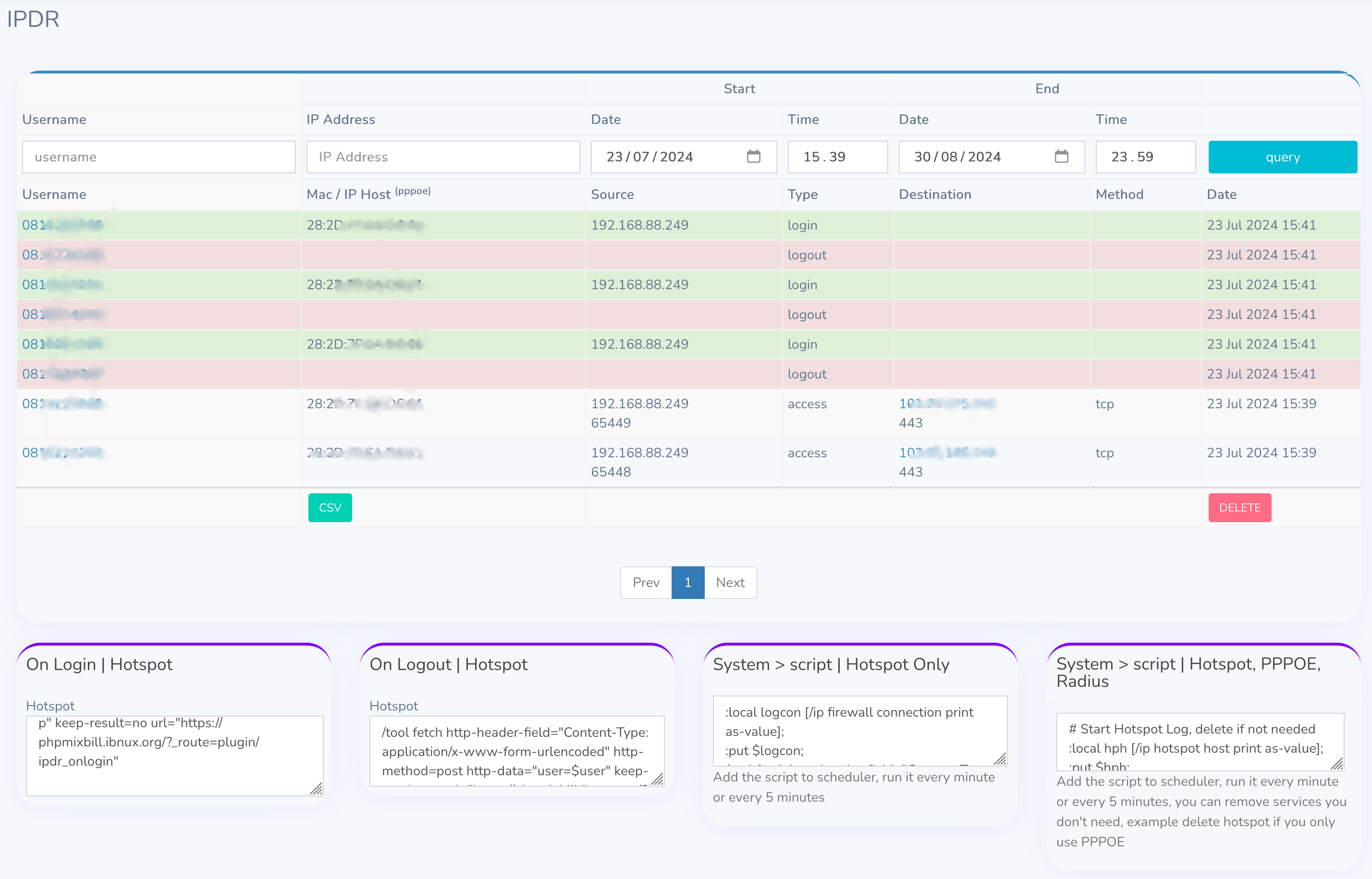 Internet Protocol Detail Record (IPDR) to log Customer activity, Works with Hotspot,